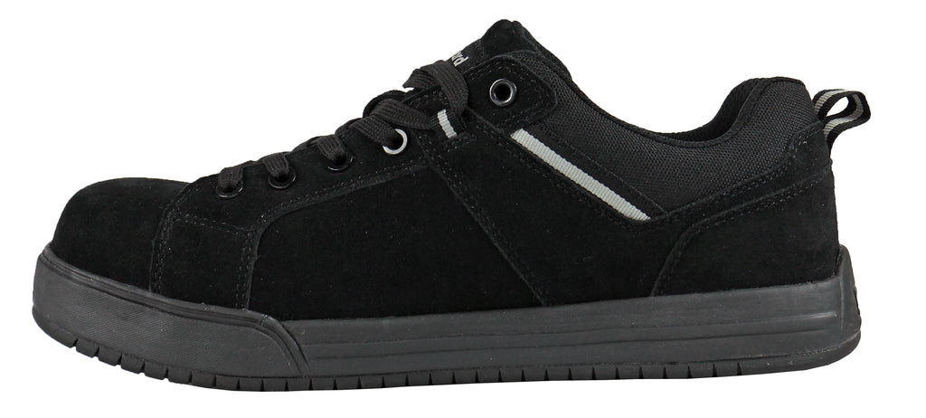 The Solstice Black Athletic Composite Toe DH20100 combines safety and performance with expert craftsmanship. It features a composite toe for reliable protection, durable suede paired with breathable fabric for comfort and style, and a fast rebound super cushion that enhances support and energy return. Its slip-resistant sole ensures stability on wet or slippery surfaces, making it ideal for professionals in construction, trades, or any demanding work environment where safety is essential. This shoe delivers the perfect balance of protection, comfort, and durability.